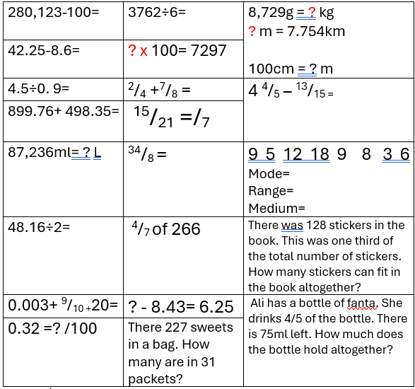 Maths- Maths arithmetic questions (attached below)